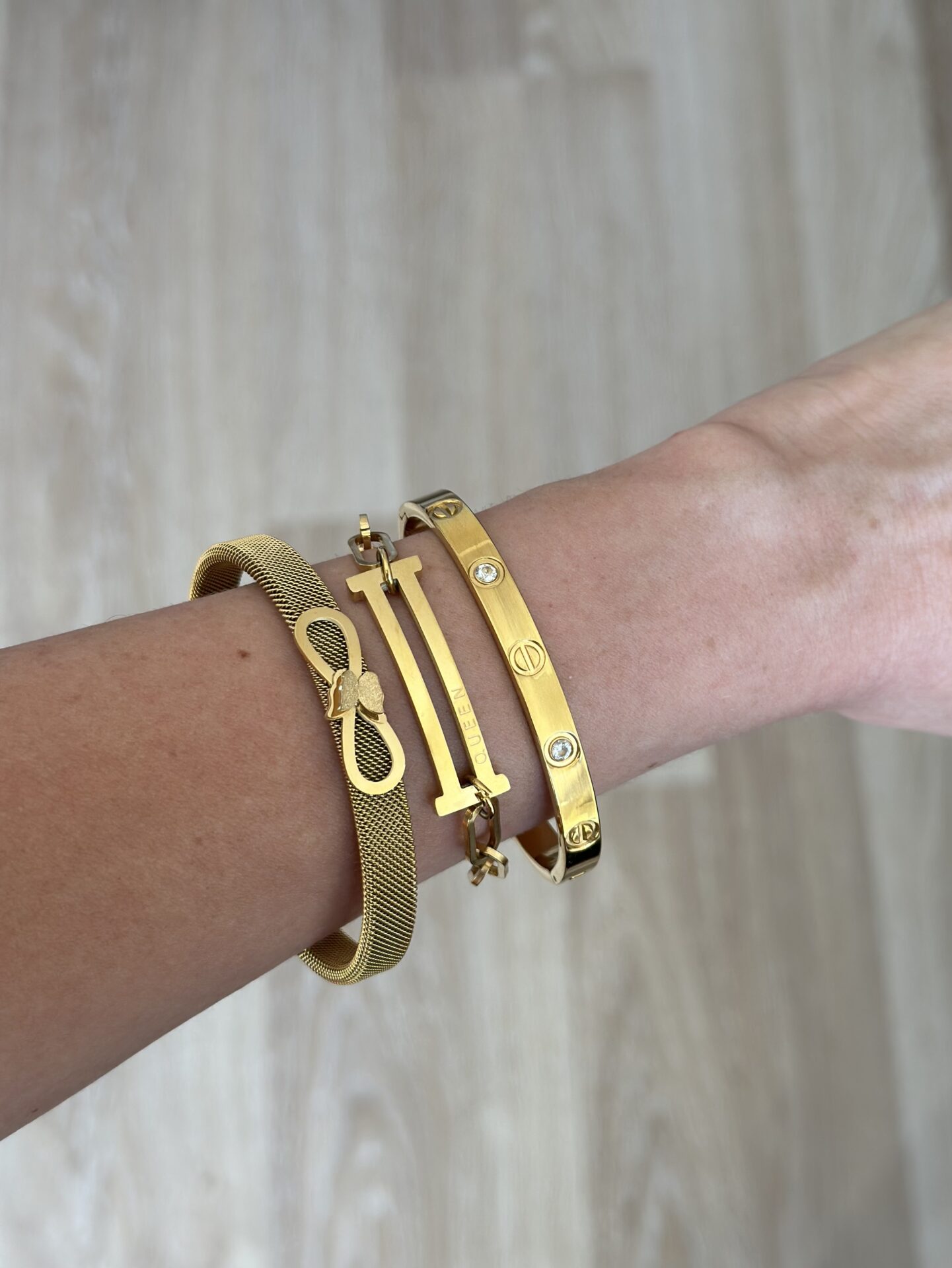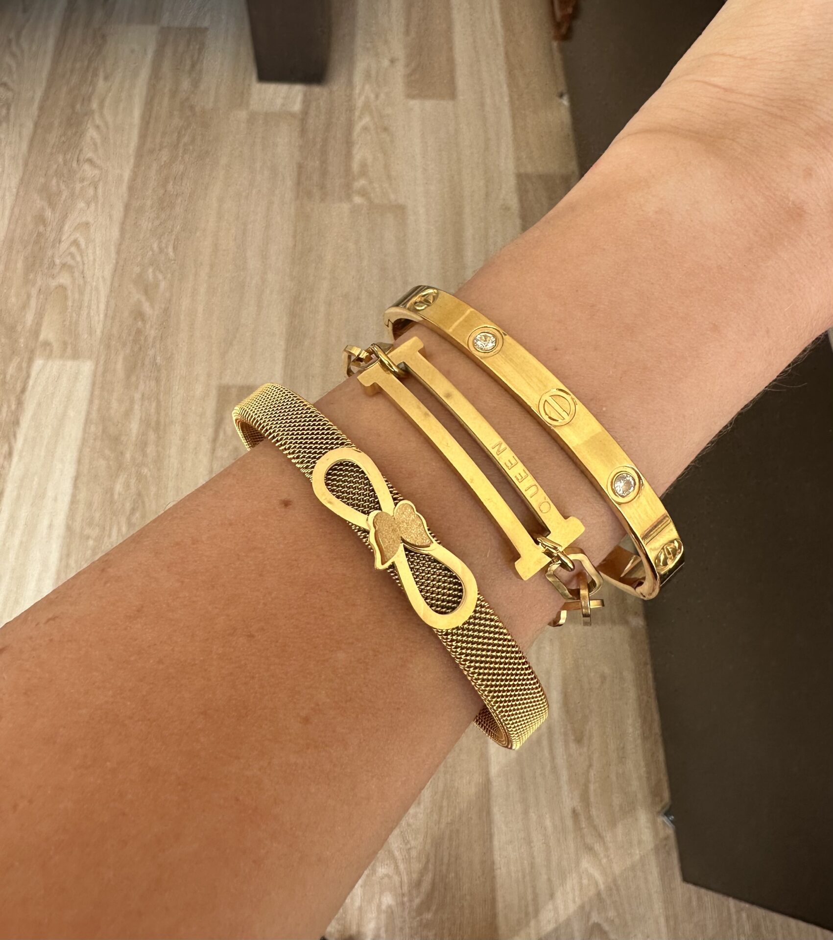 | Seçenekler | Kelebek Style Hasır Kelepçe, Ortadaki Çelik Bileklik, Love Screw Taşlı Gold Bileklik |