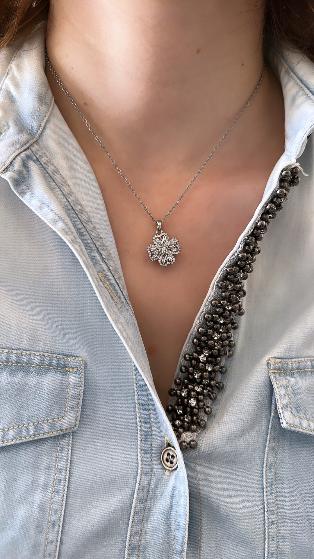 Flower Design Çelik Silver Kolye