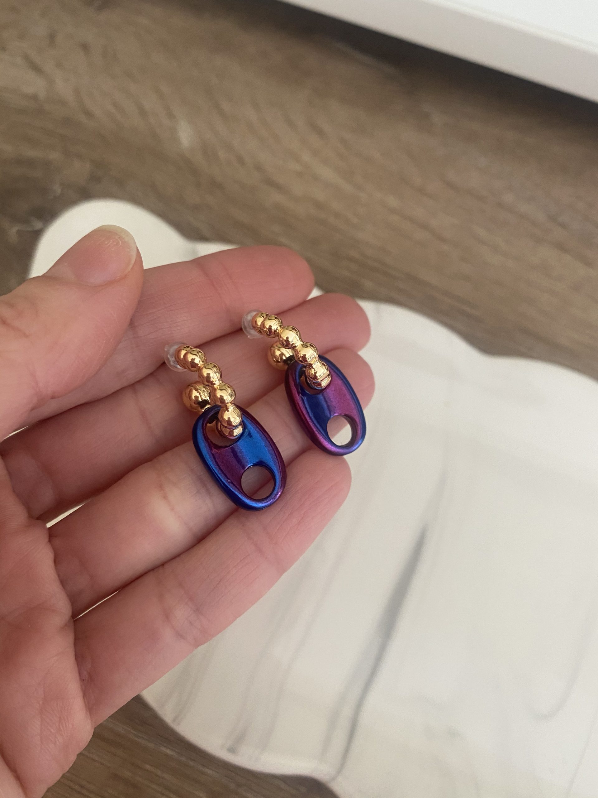 Gold Mor Renkli Düğme Küpe - Görsel 2