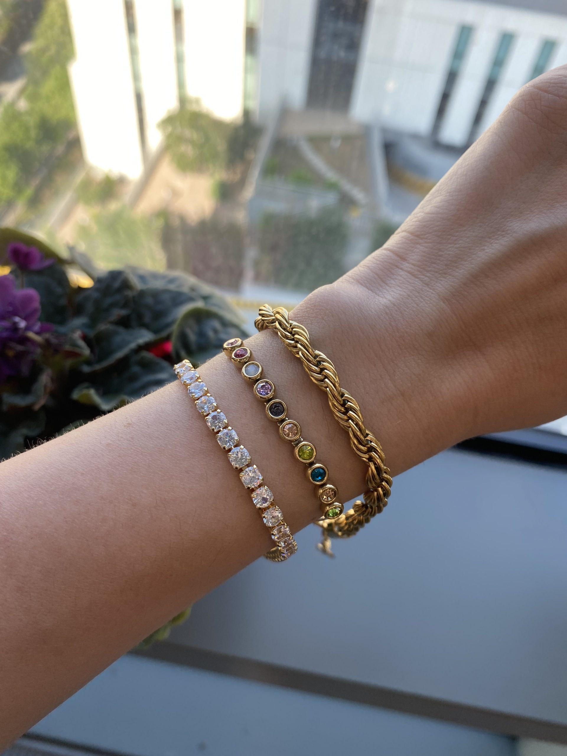 Gold Zirkon Taş Su Yolu Bileklik