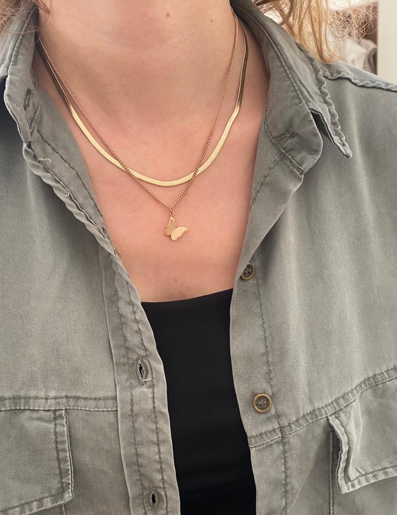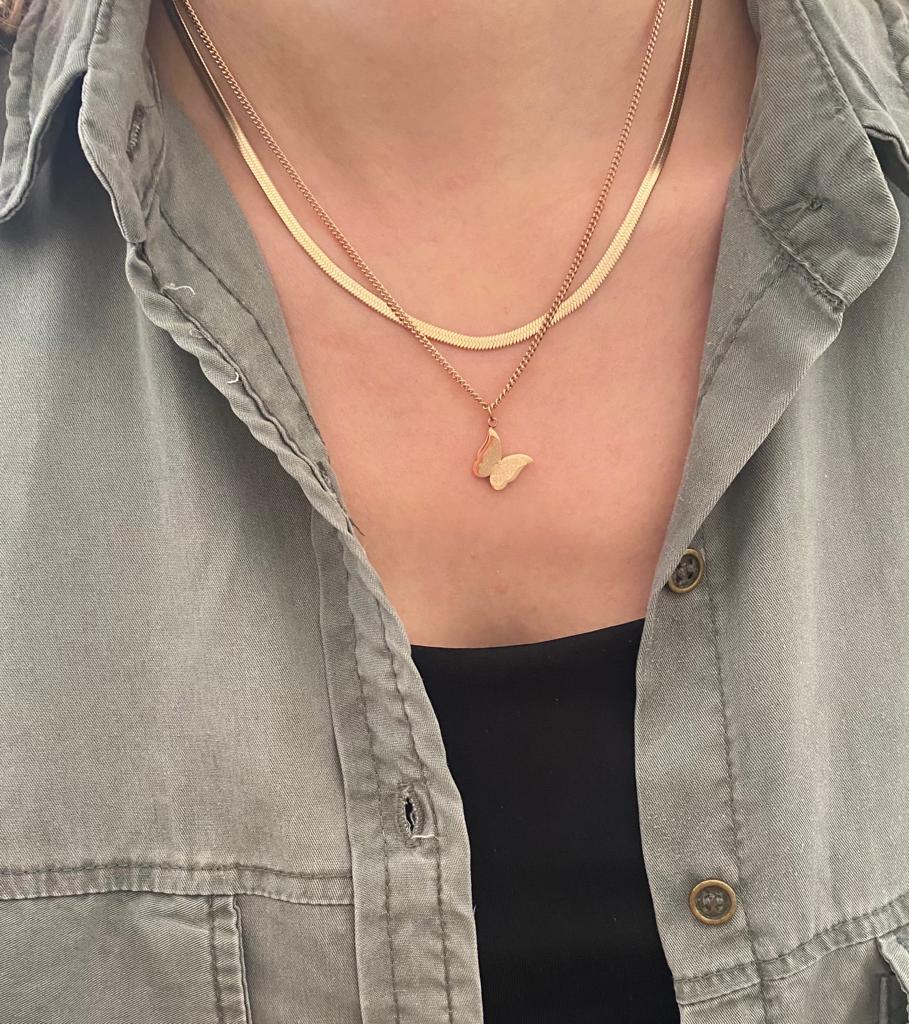 İtalyan ve Kelebek İkili Çelik Gold Kolye