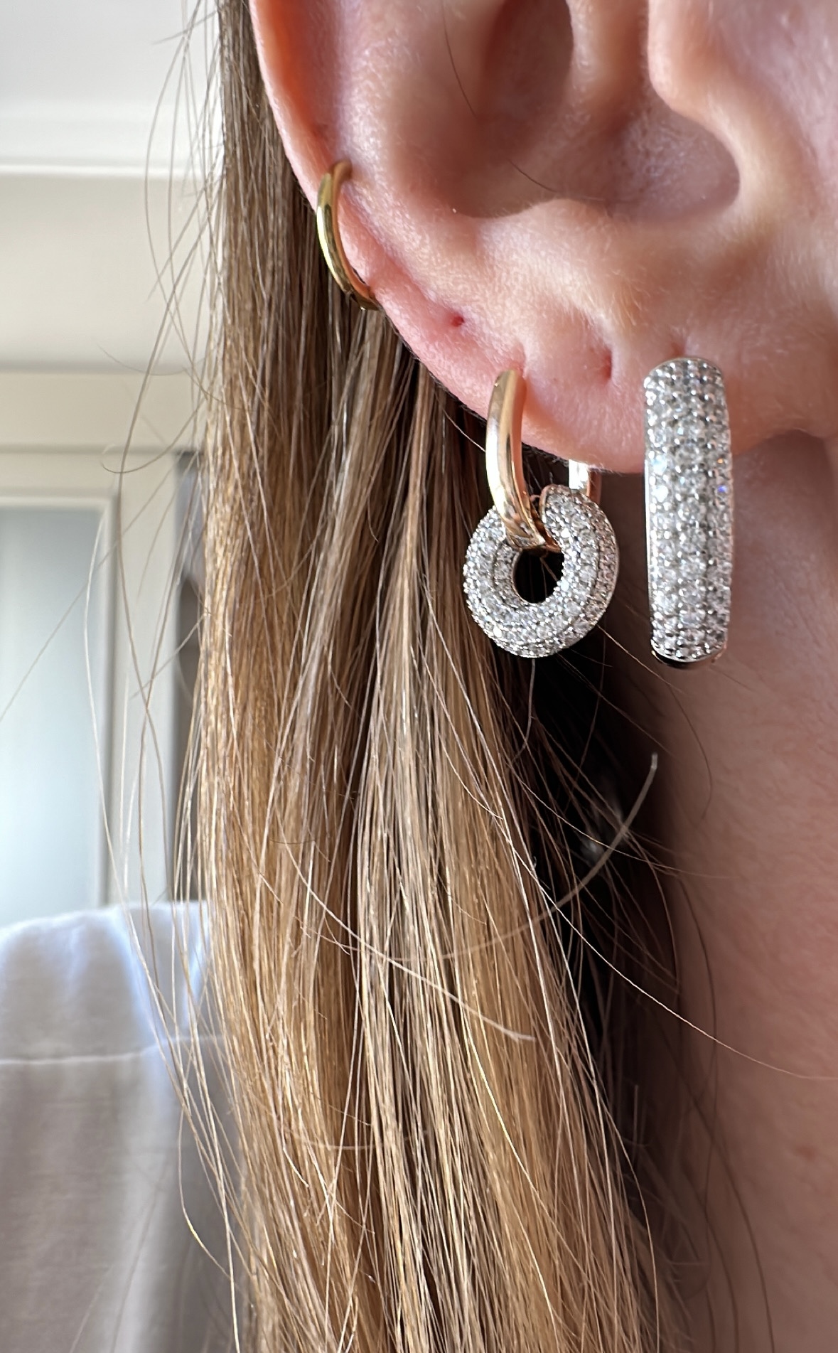 Kalın Zirkon Taş Halka Küpe – Yuvarlak Zirkon Taş Küpe
