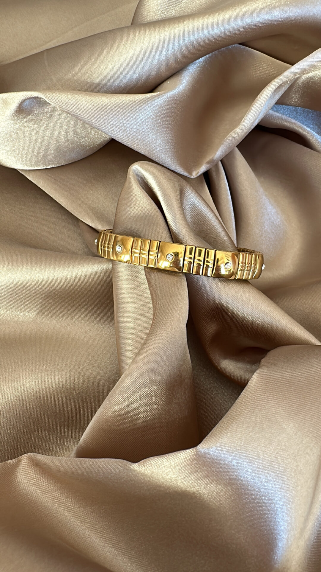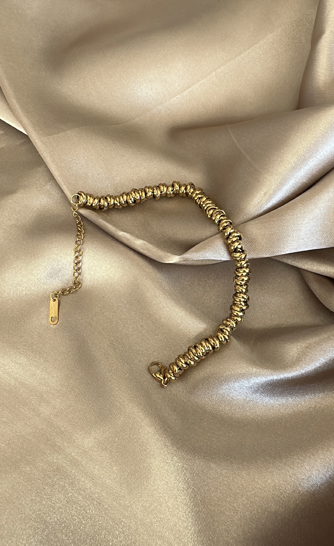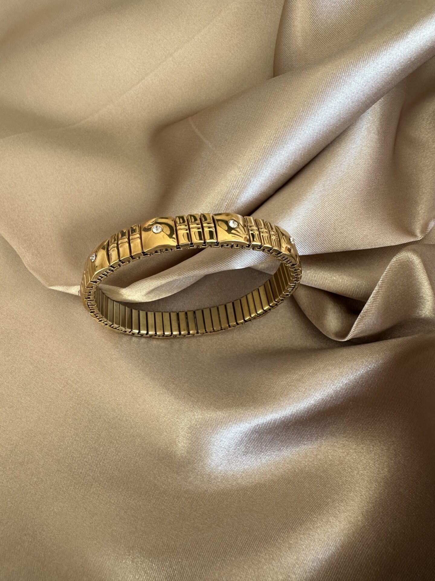 Taşlı Esnek Lastikli Çelik Bileklik- Halka Gold Çelik Bileklik