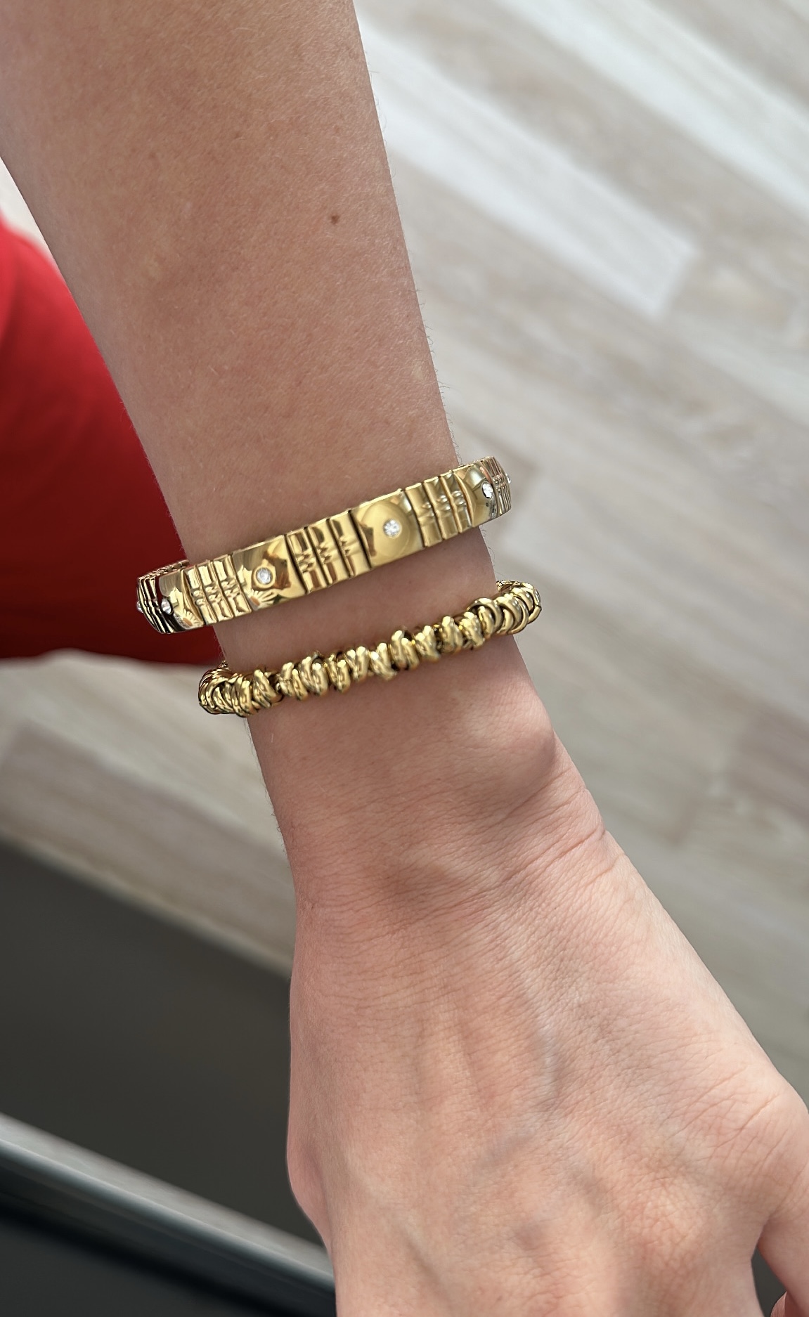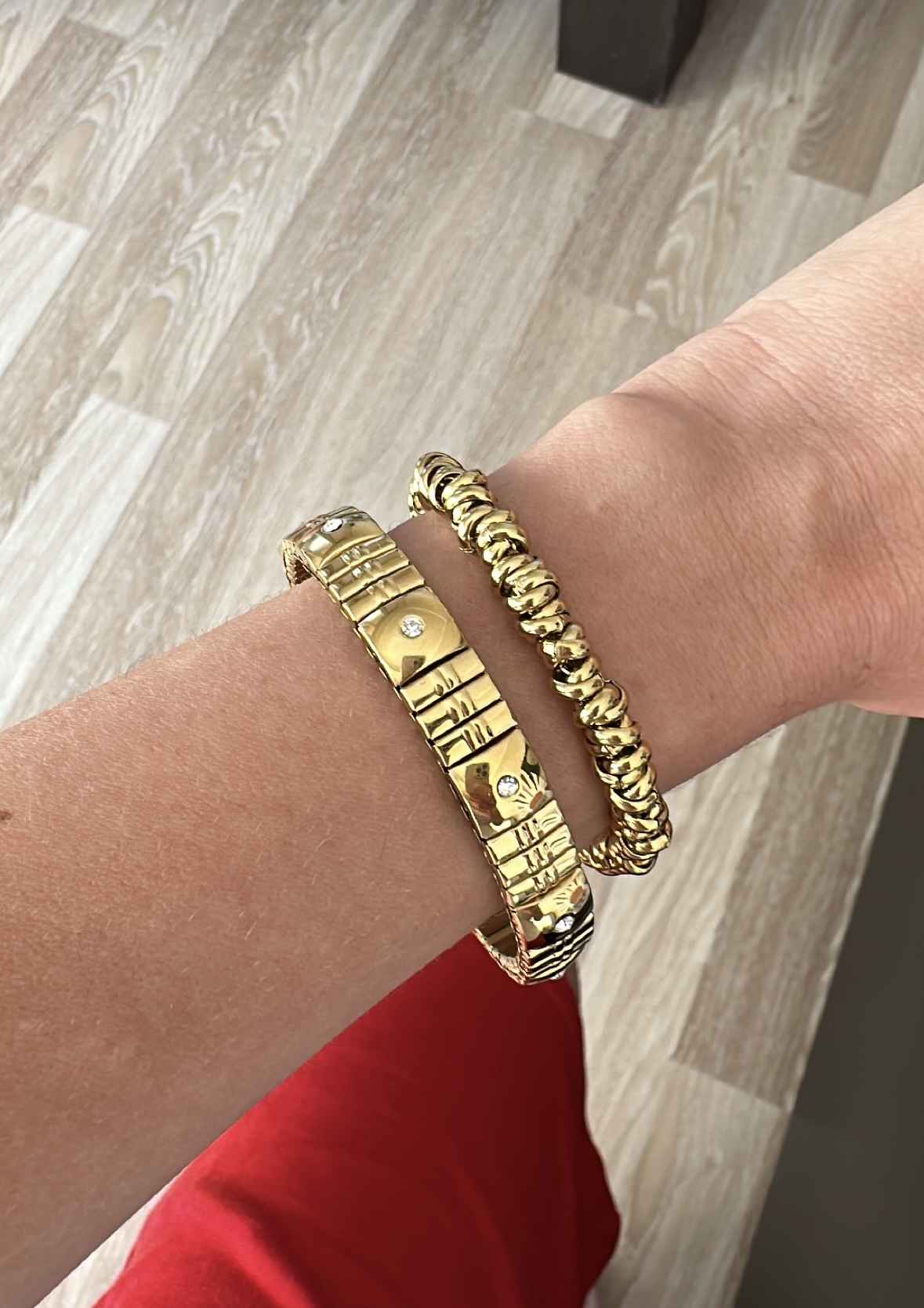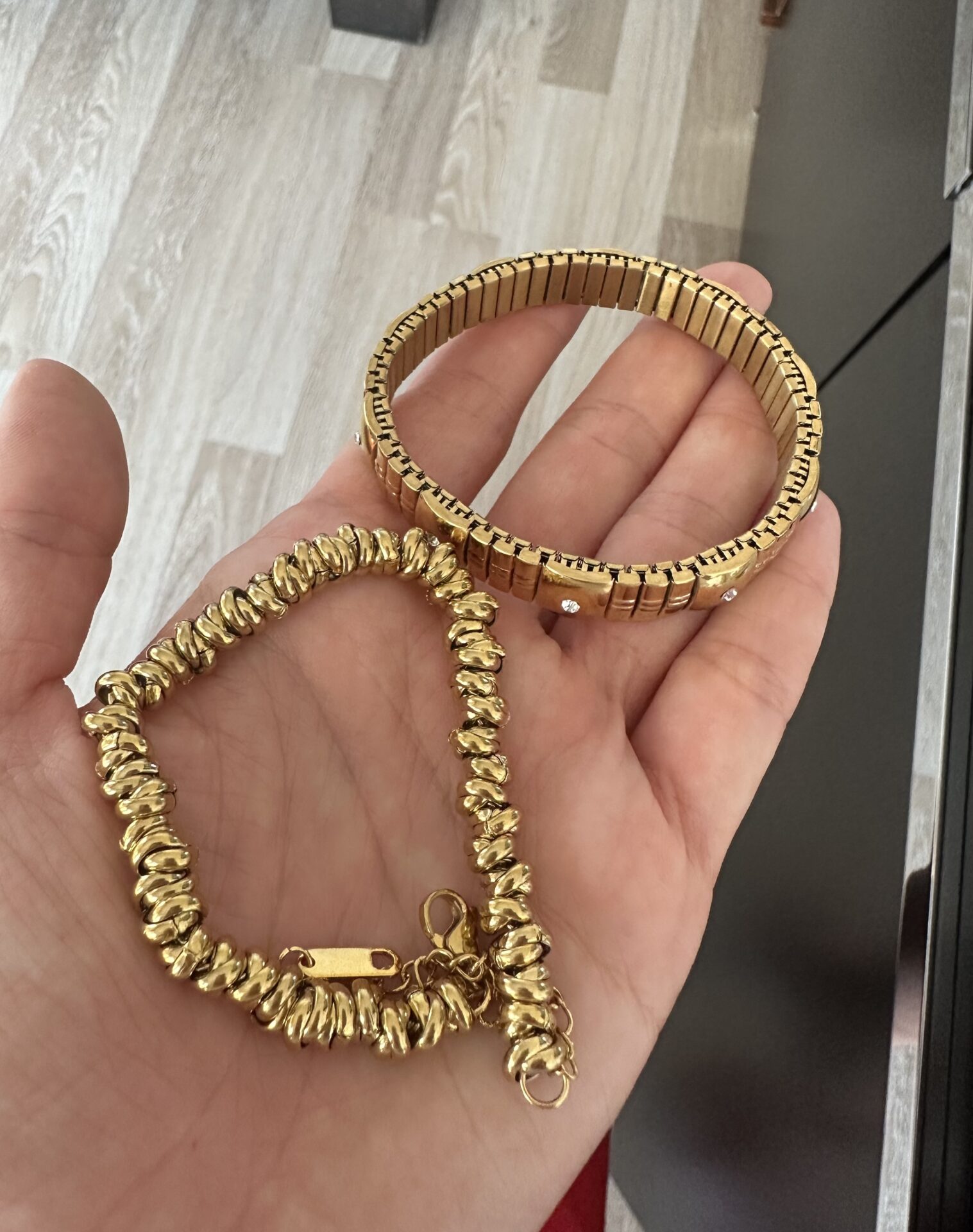 Taşlı Esnek Lastikli Çelik Bileklik- Halka Gold Çelik Bileklik