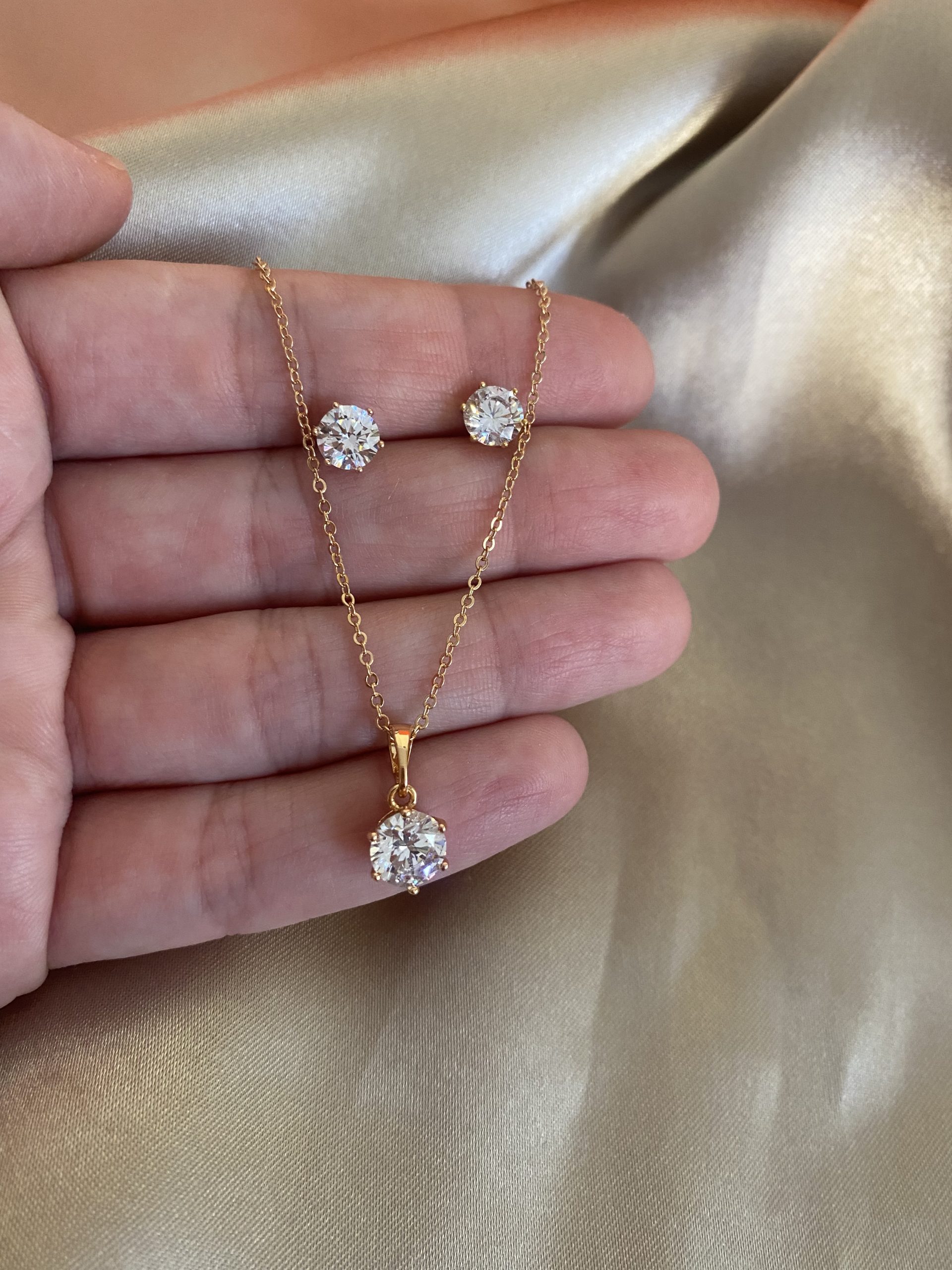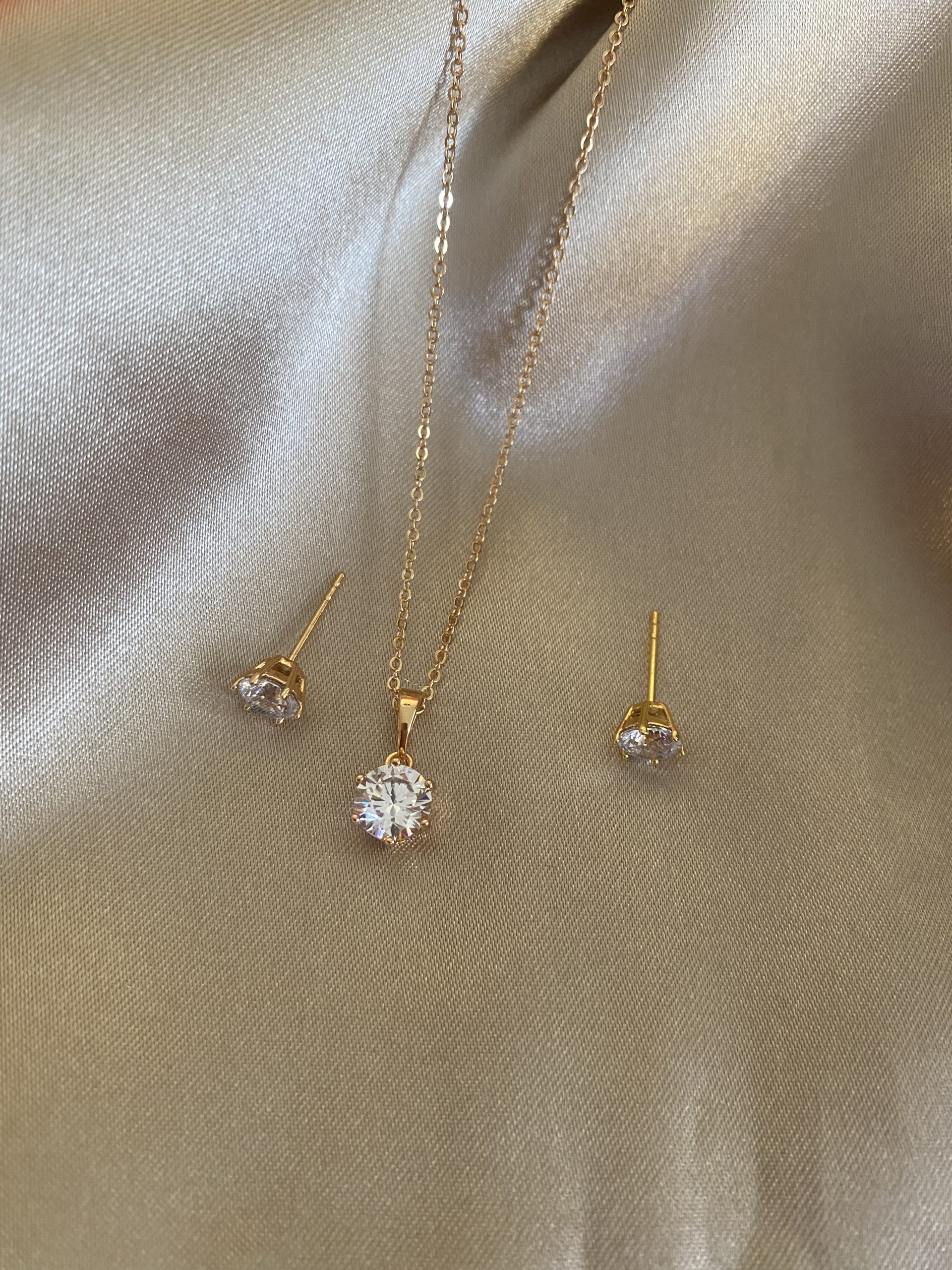 Tek Taş Kolye Küpe Set