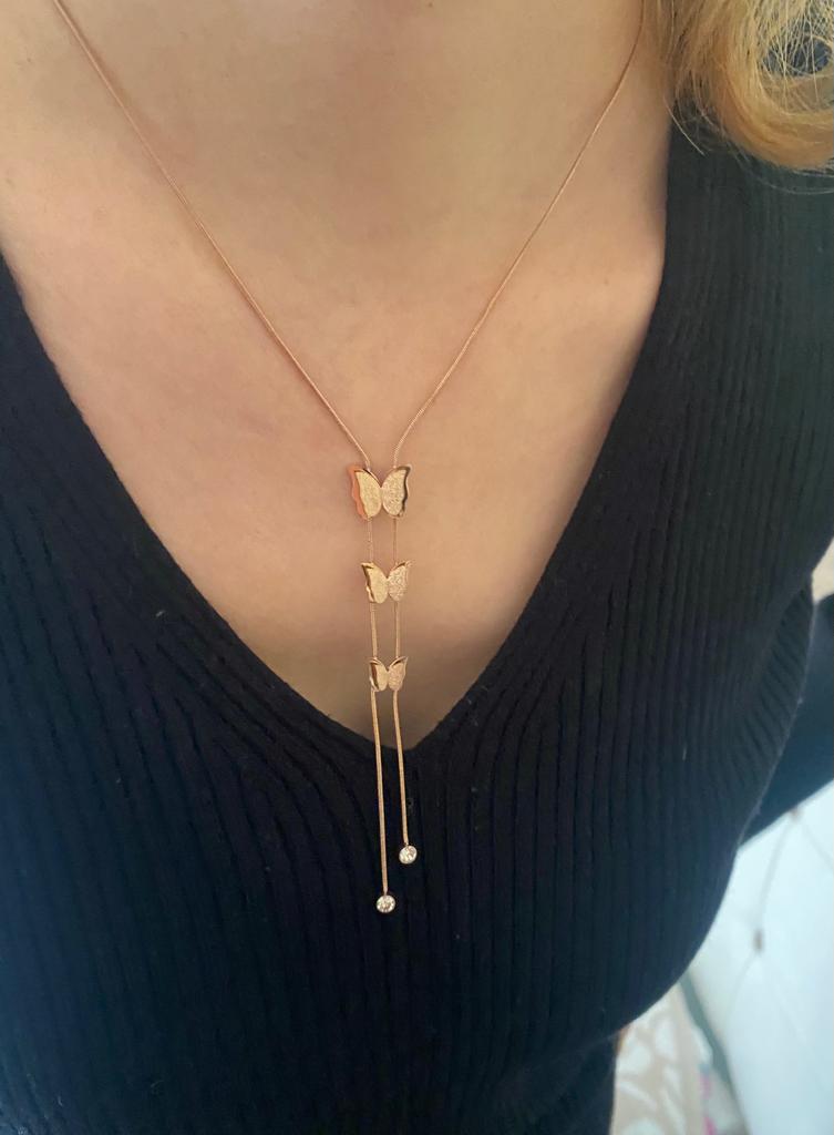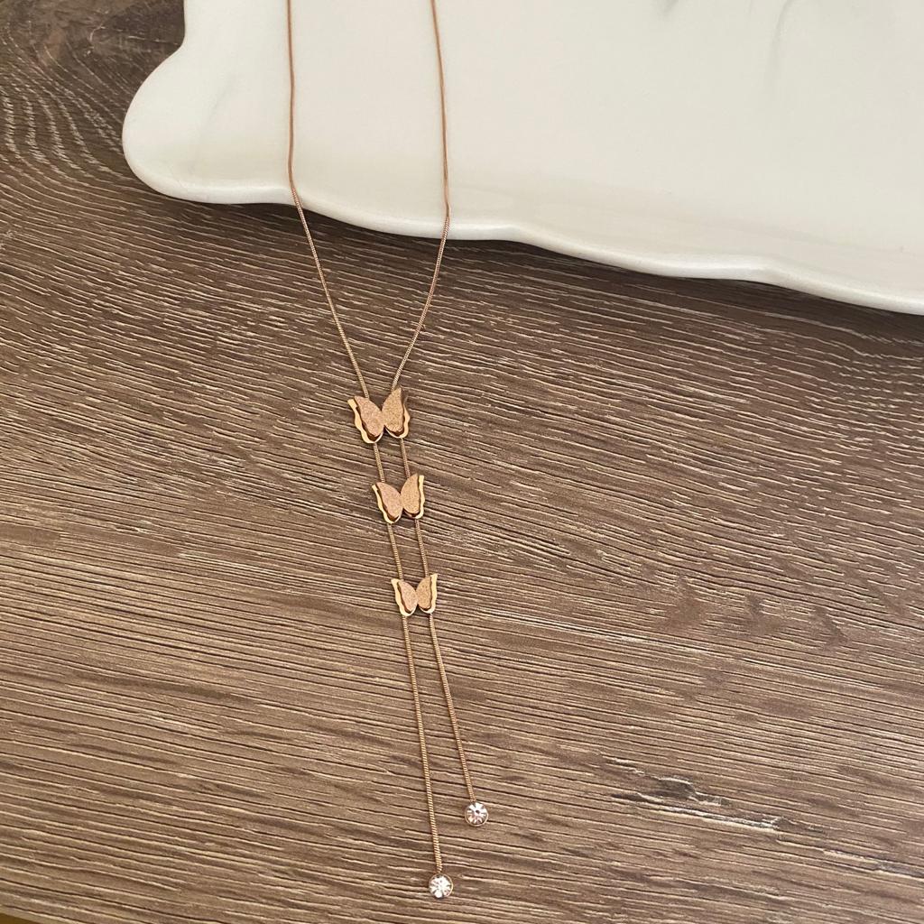 Üçlü Kelebek Çelik Kolye