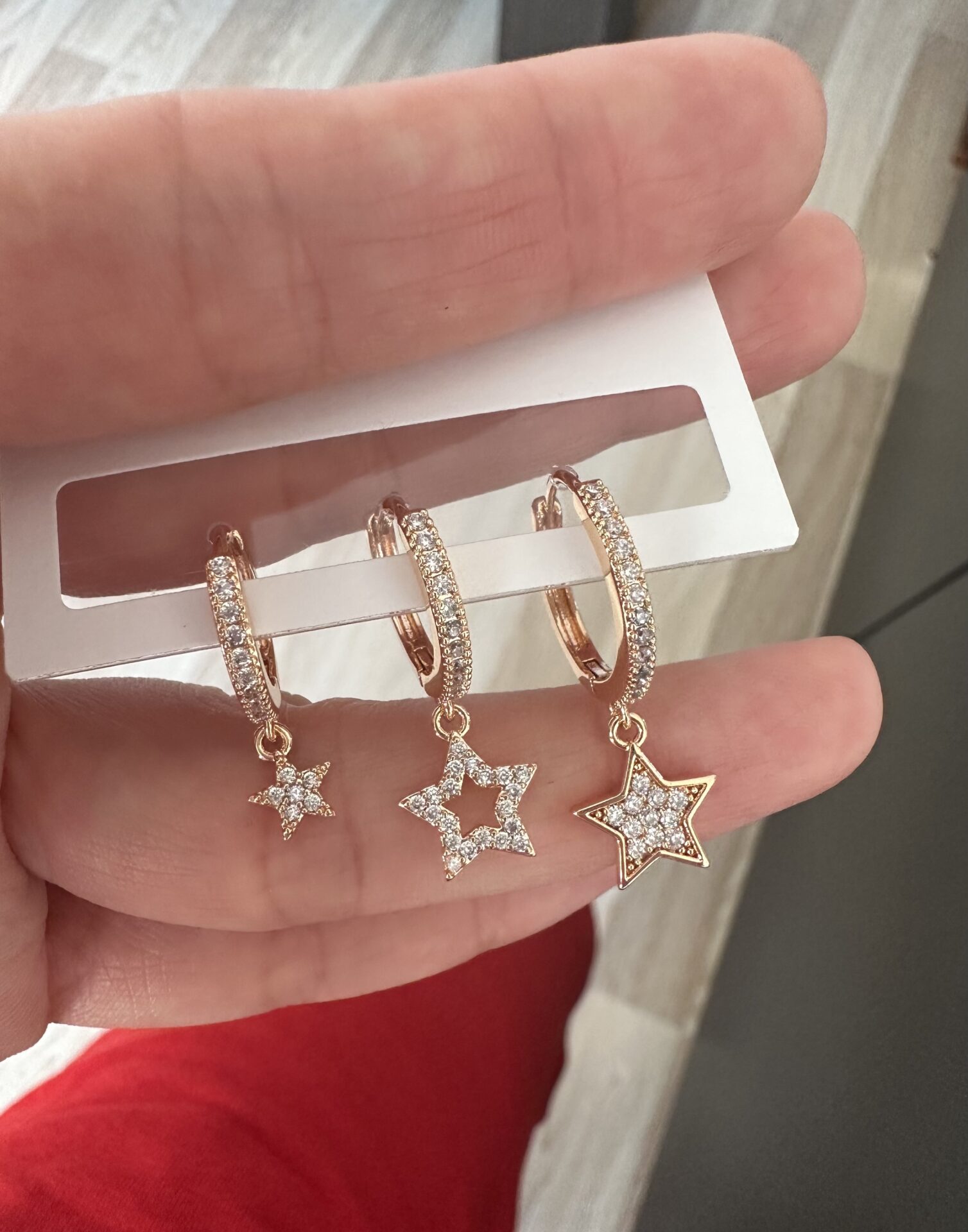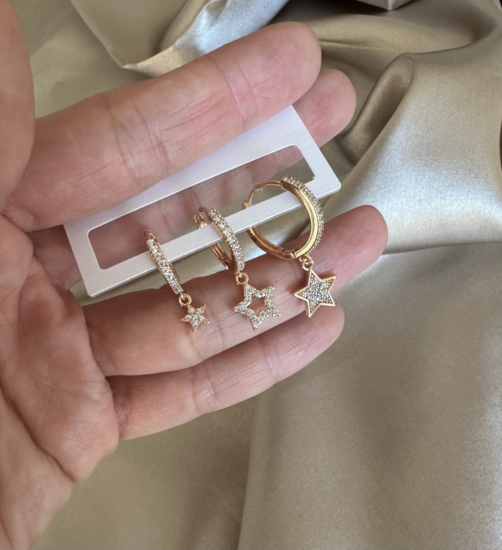 Üçlü Yıldız Serisi Rosegold Set Küpe